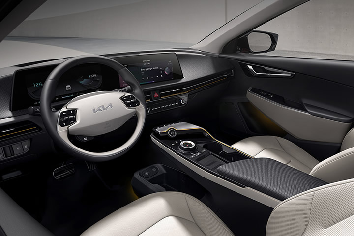 Inspiráció a legtisztább formában: A Kia EV6-ban izgalmas, tágas belső tér, relaxációs ülések és prémium audió rendszer biztosít megfelelő környezetet és kényelmet az ötletek áramlásának. Ultragyors töltési technológiájának köszönhetően lecsökken a töltési idő, így az igazán fontos dolgokkal foglalkozhatsz.